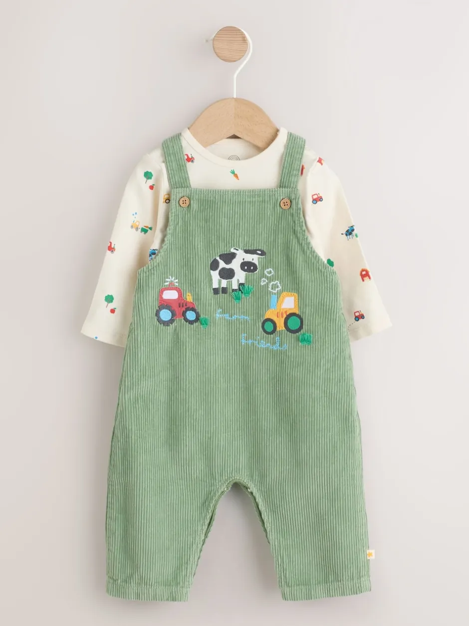 Next – Ensemble salopette et body en velours côtelé (0mois-2ans) Vert motif ferme Best