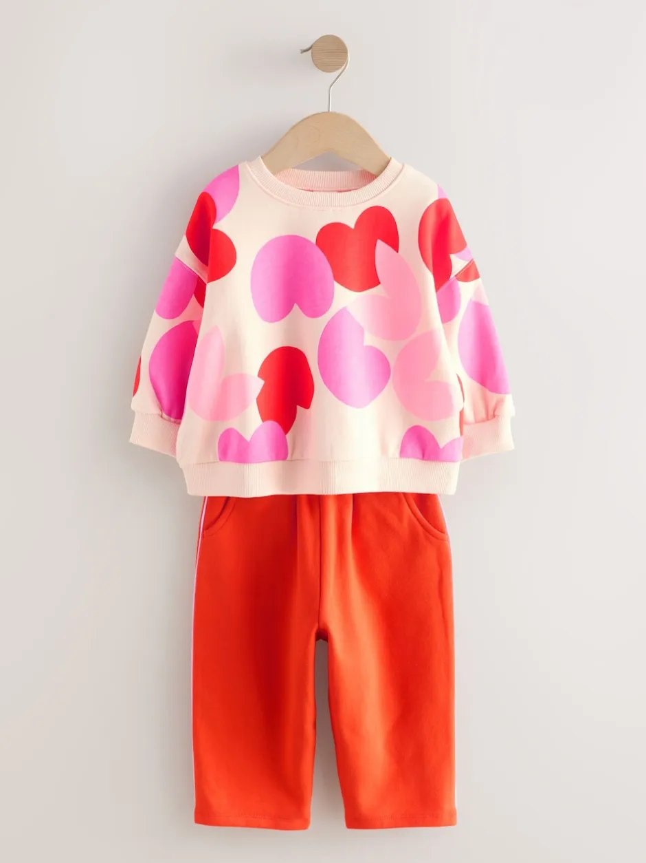 Next – Ensemble Sweat-shirt et jogging Coupe ballon (3mois -7ans) Rose/rouge motif cœurs Online