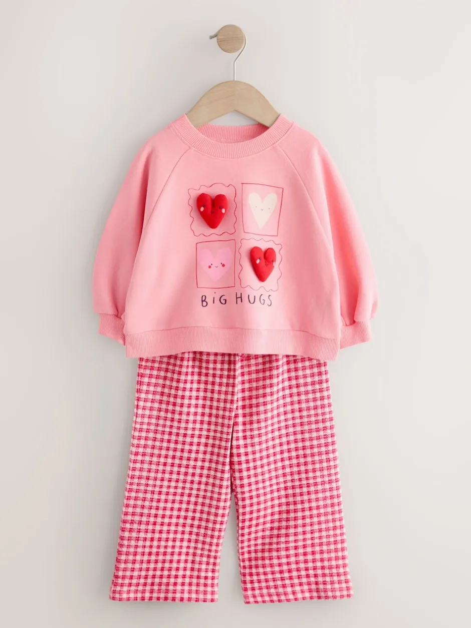 Next – Ensemble Sweat-shirt et Pantalons Amples (3mois-7ans) Coeur rose
