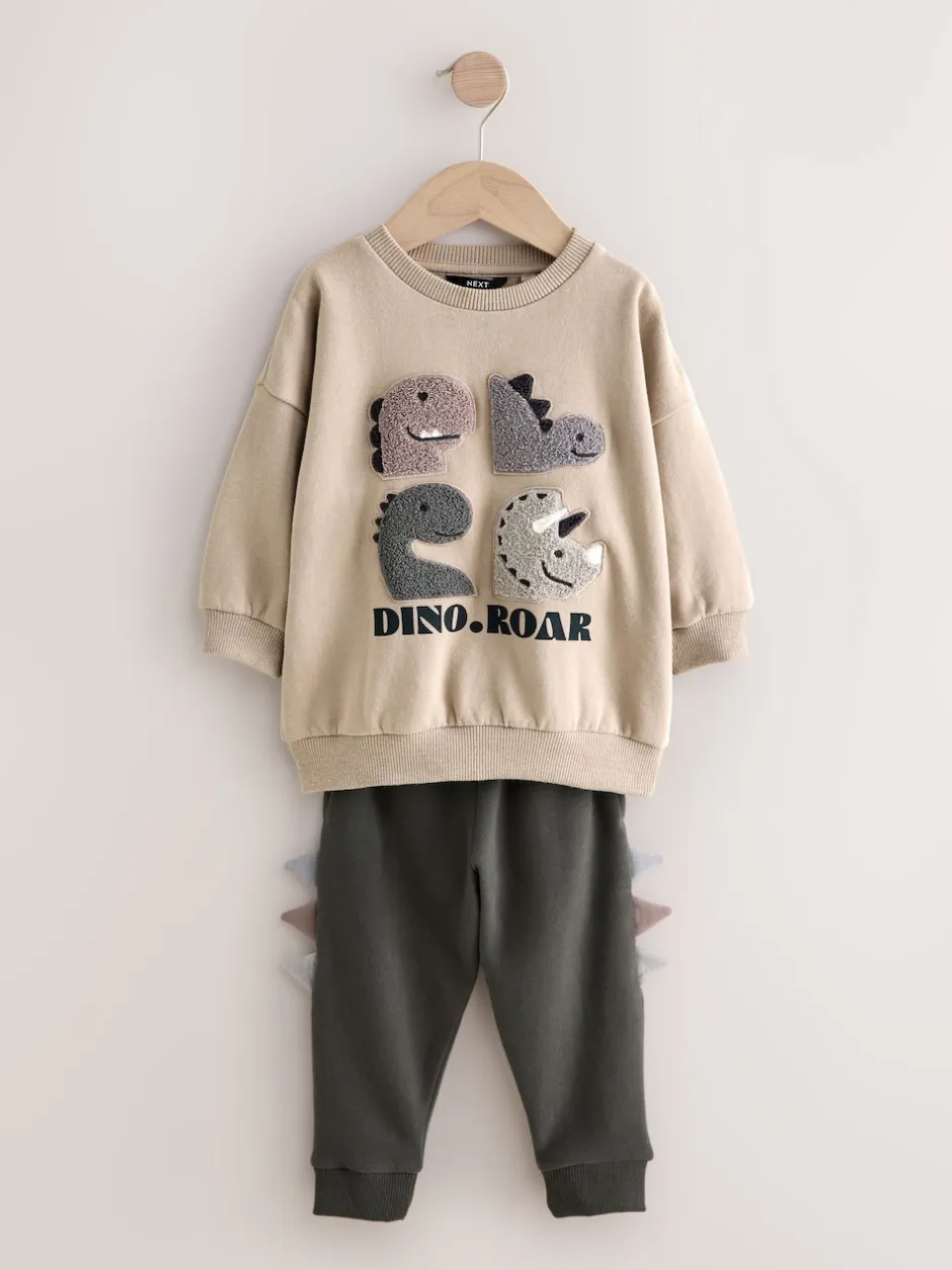 Next – Ensemble Sweat-shirt et Survêtement (3mois à7ans) Gris et anthracite à pointes de dinosaures Outlet