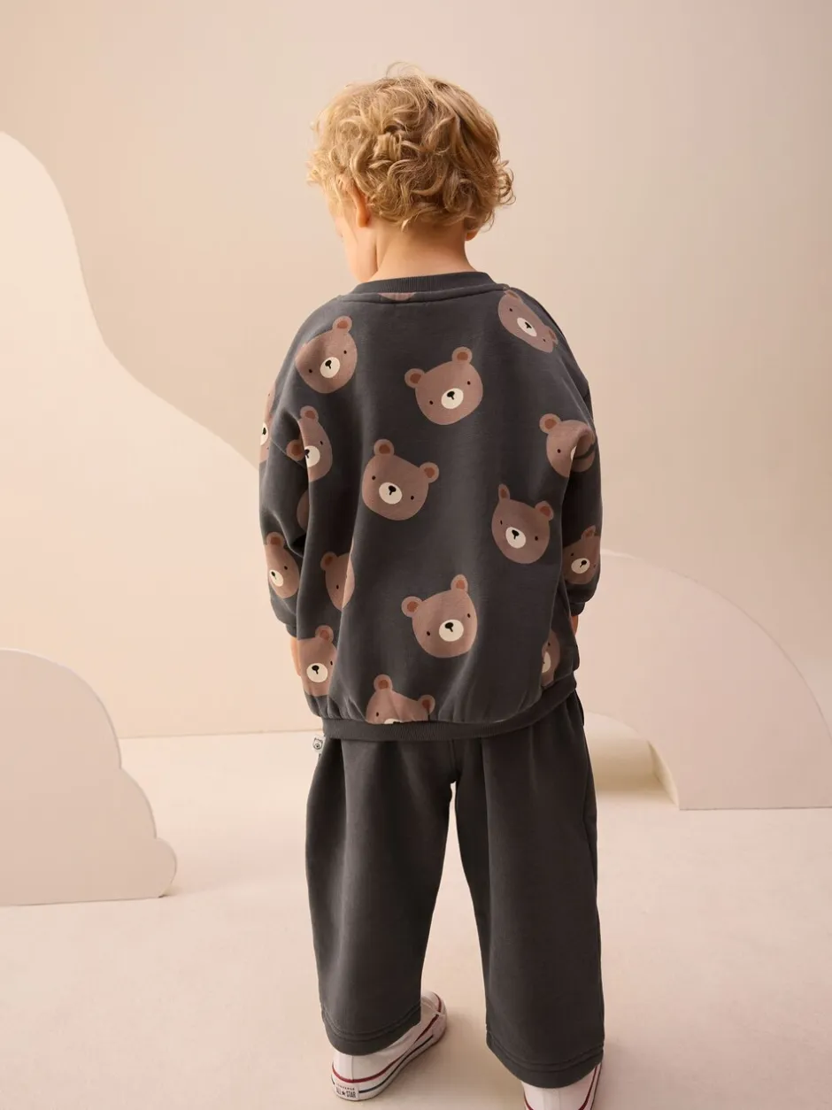 Next – Ensemble Sweatshirt et Joggers Rayure (3mths-7yrs) Ours gris anthracite partout