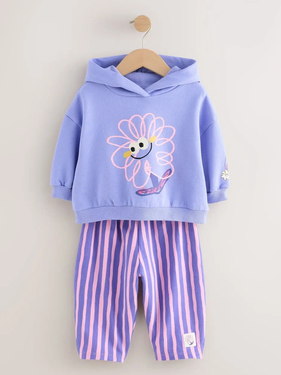 Next Fleur violette rayée – Ensemble sweat à capuche et coupe ballon Survêtement (3mois -7ans)