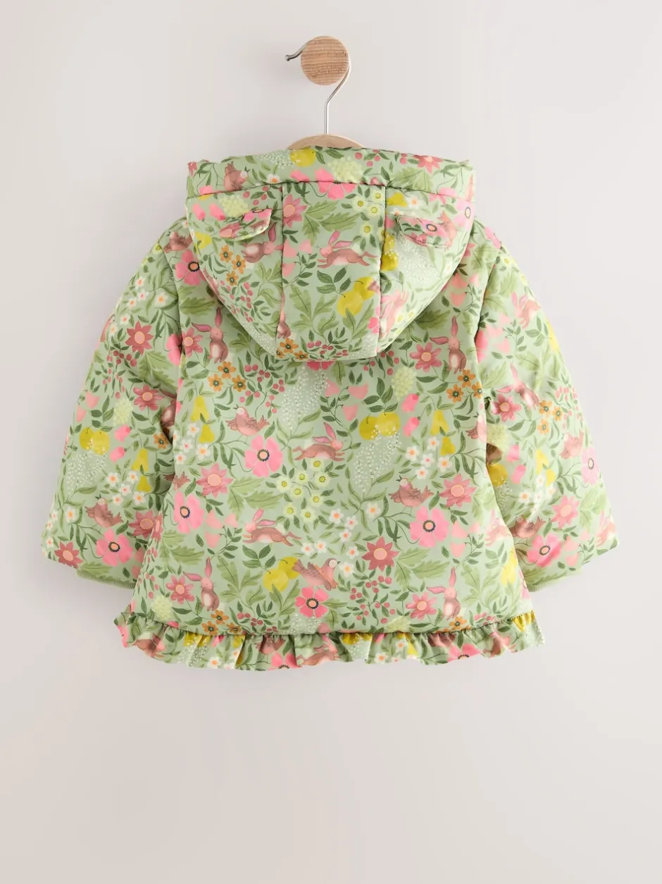Next Floral vert – Manteau rembourré Résistant à la douche à ourlet à volants (3mois-7ans) New
