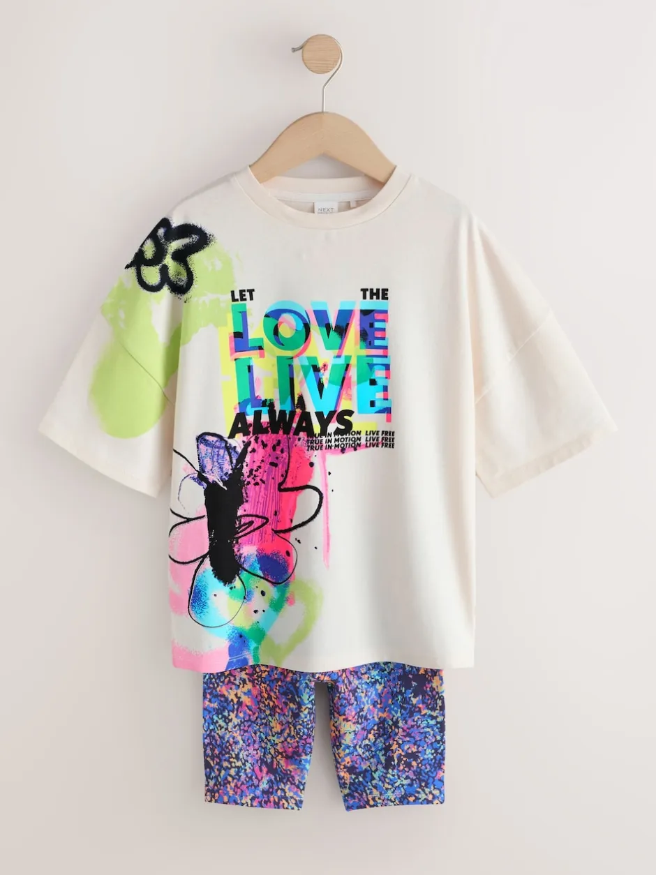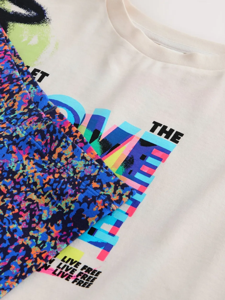 Next Graffitis bleu/blanc – Ensemble t-shirt et short cycliste (3-16ans) Outlet