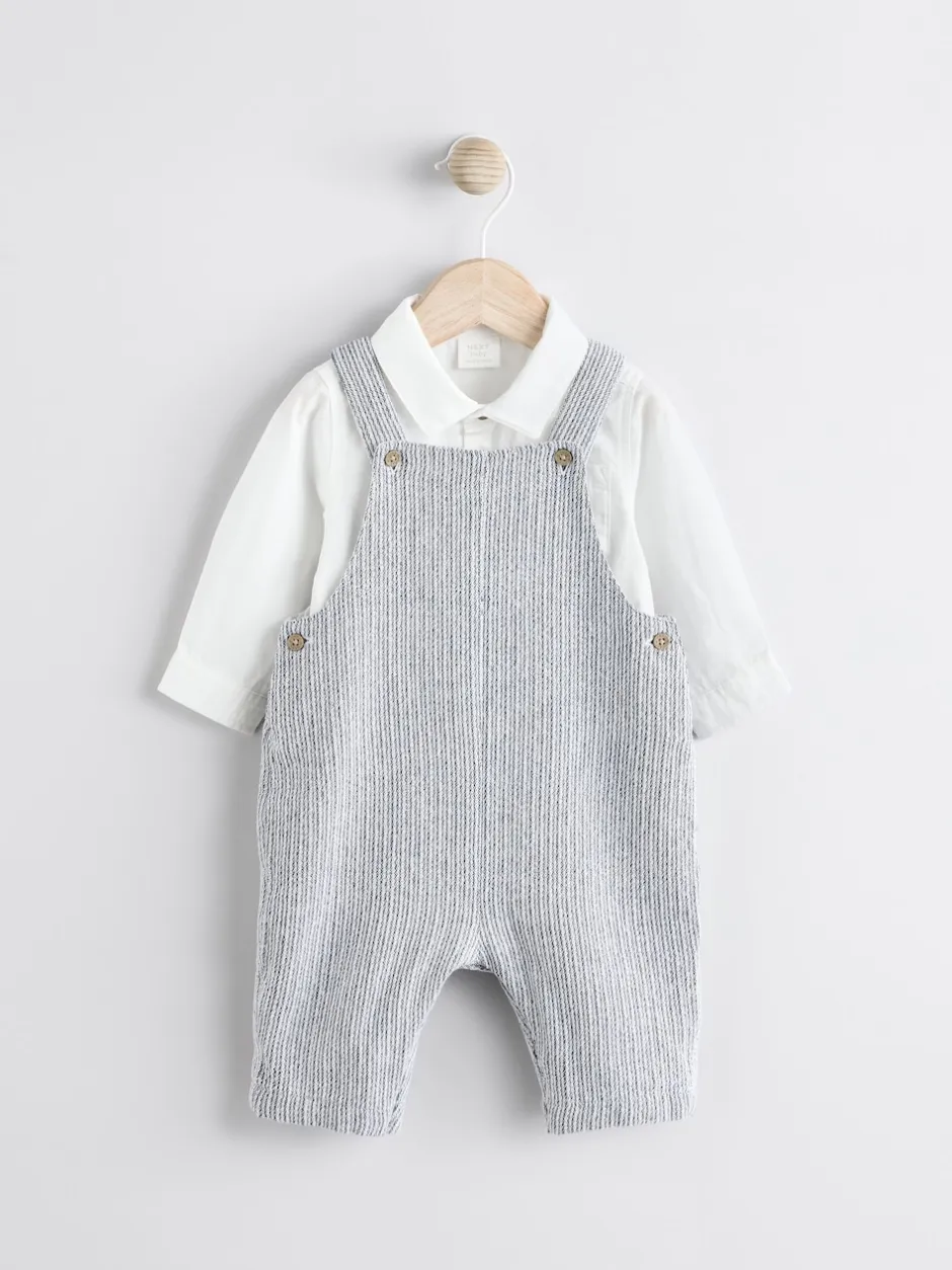 Next Gris/Blanc – Ensemble salopette et body bébé en coton tissé (0mois-3ans) Sale