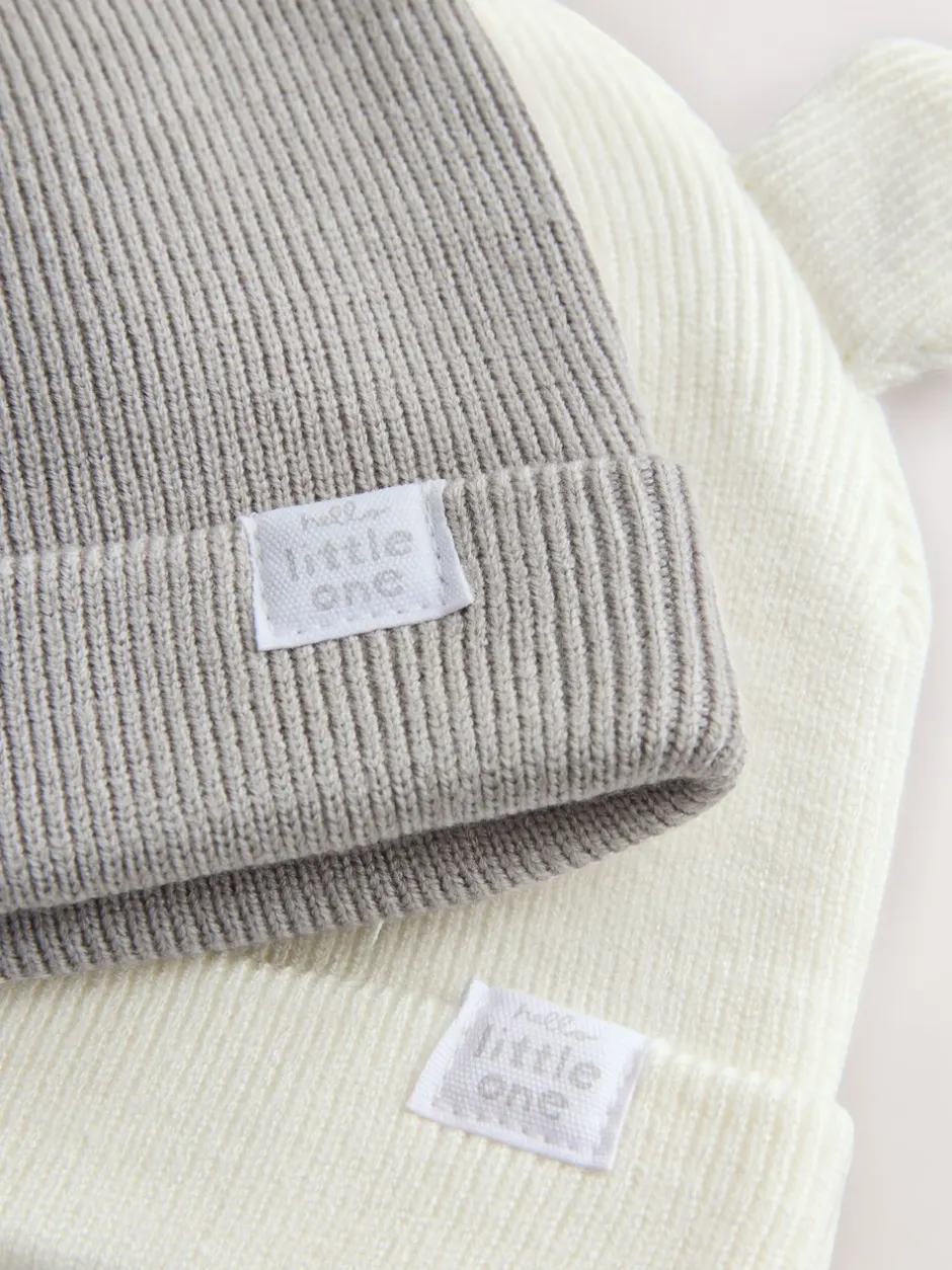 Next Gris/Blanc – Lot de 2bonnets côtelés pour bébé