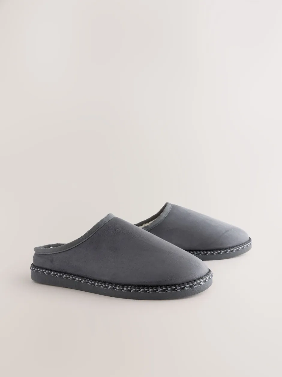 Next Gris – Chaussons mules à bande en microdaim Hot