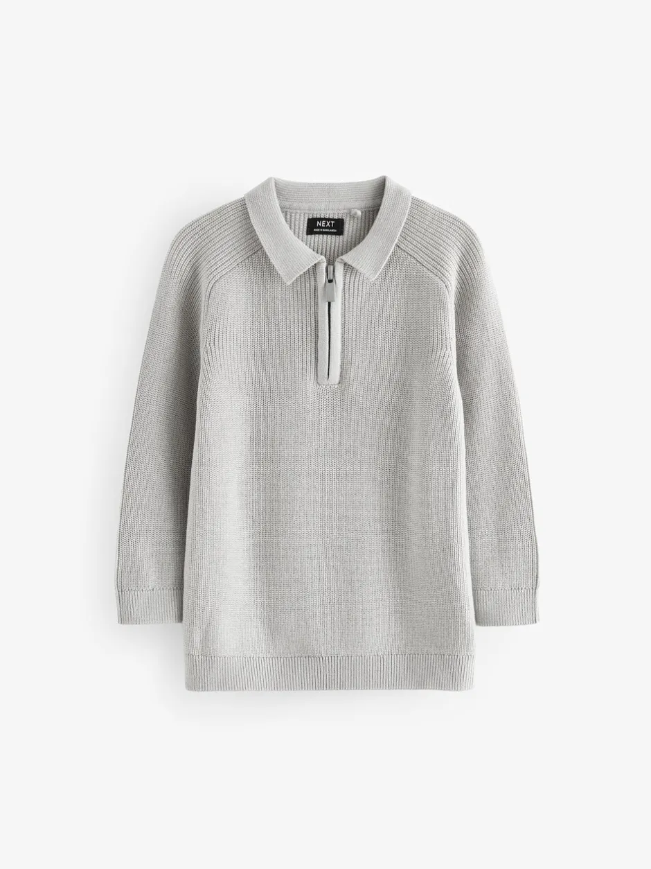 Next Gris clair – Manches longues Quarter Zip Knitted Polos (3mths-7yrs) Best