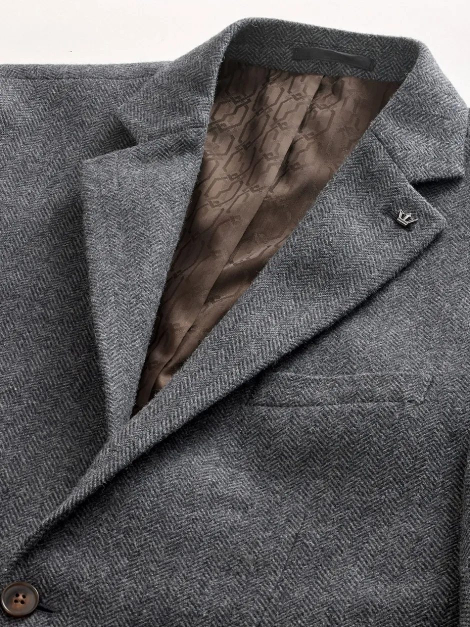 Next Gris de charbon de bois – Ajustement régulier – Blazer à chevrons riche en laine Online