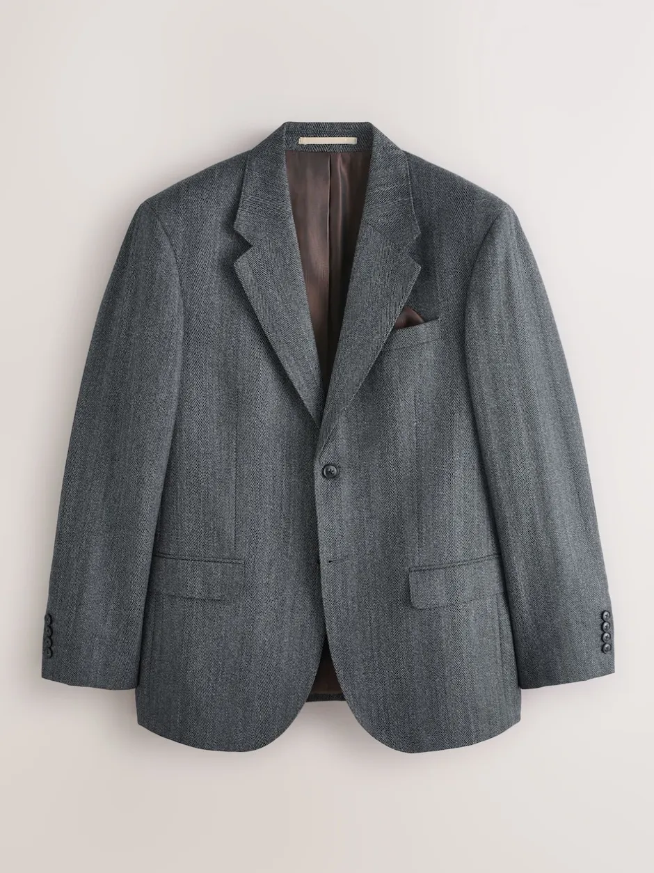 Next Gris de charbon de bois – Veste de costume à chevrons Marzotto 100% laine italienne Coupe classique Online