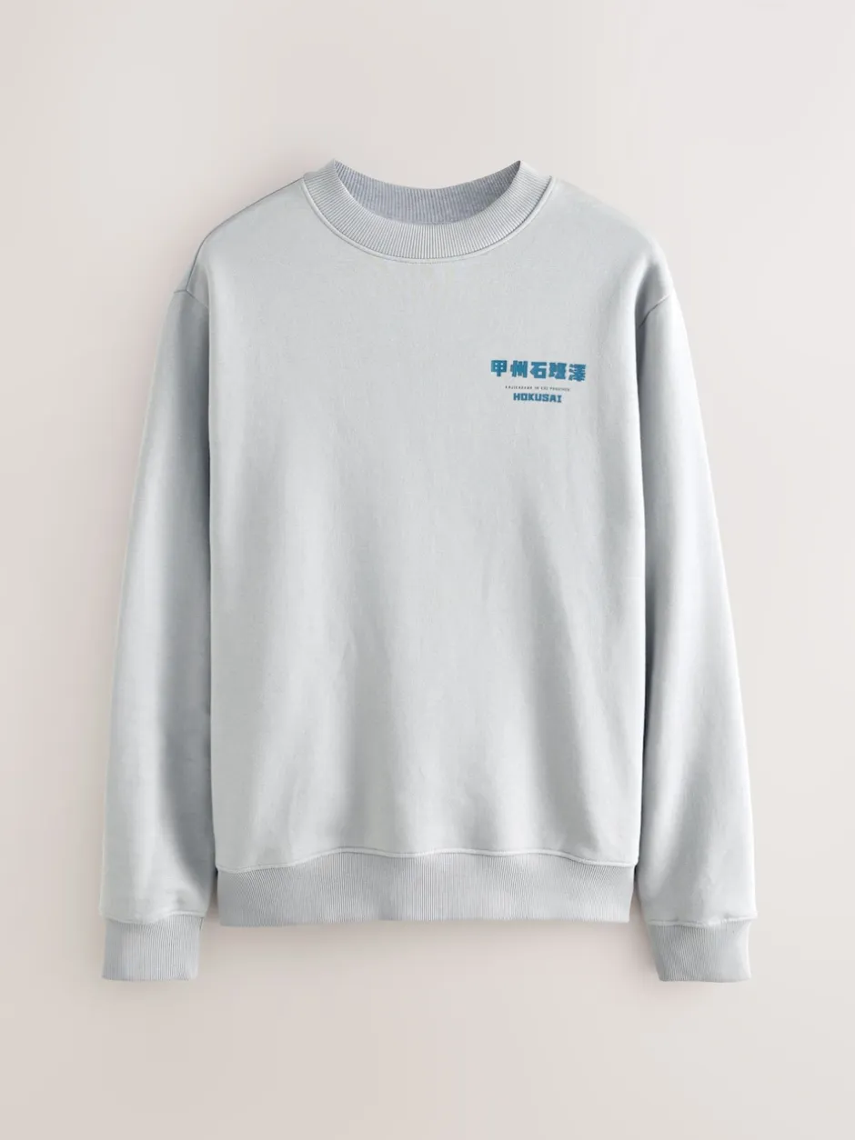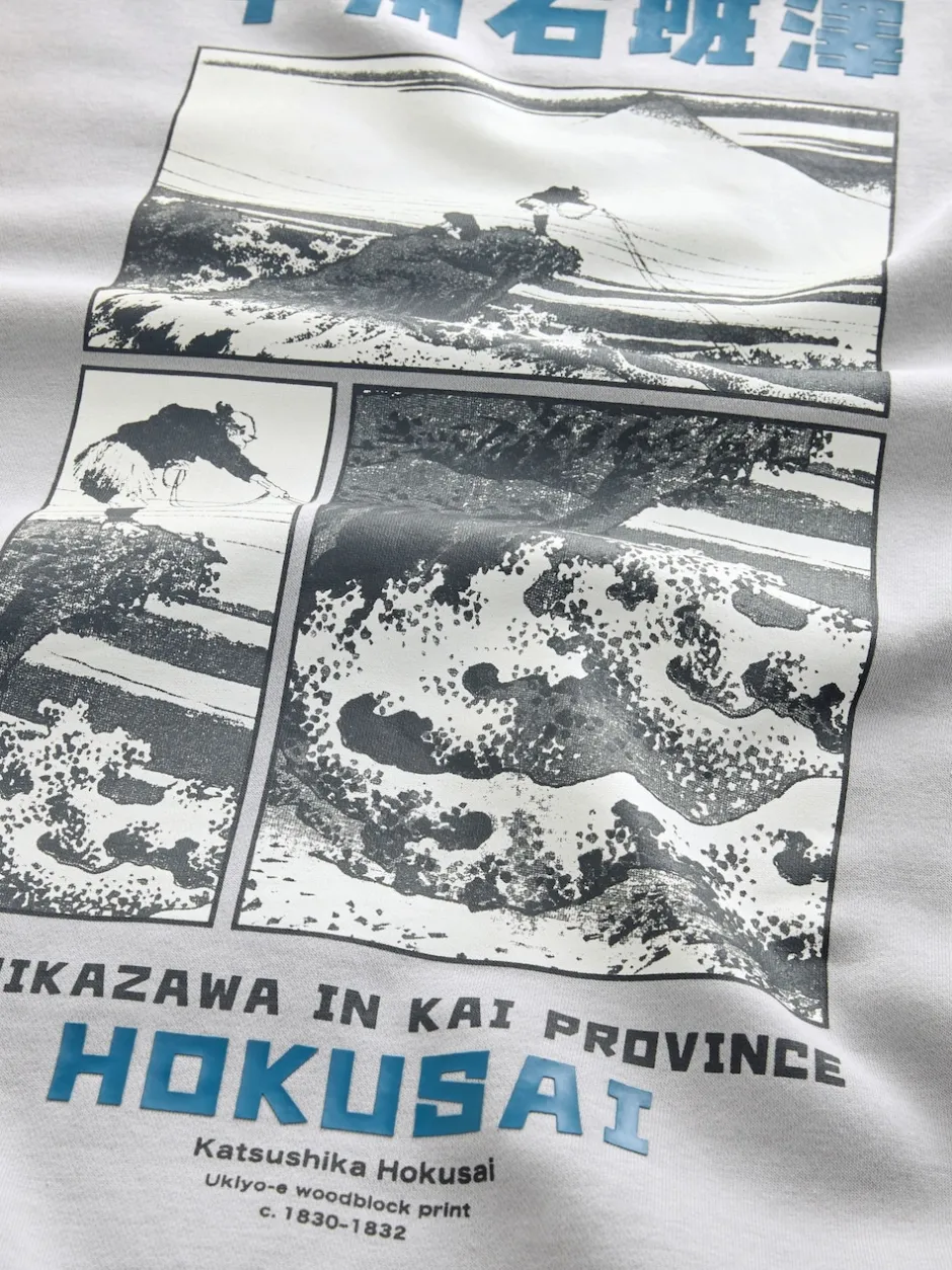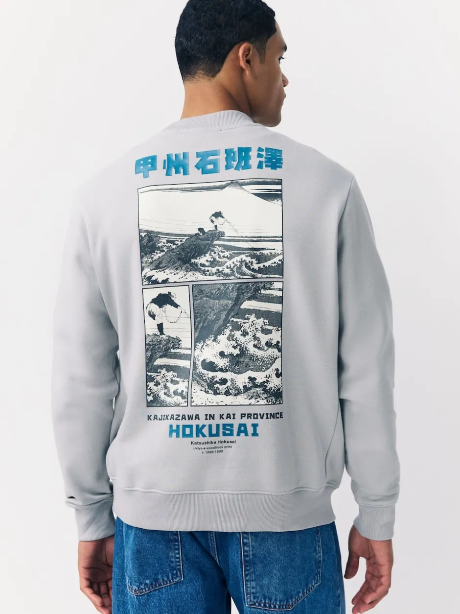 Next Gris glace – Sweat-shirt avec col ras du cou – Licence graphique Hokusai Hot