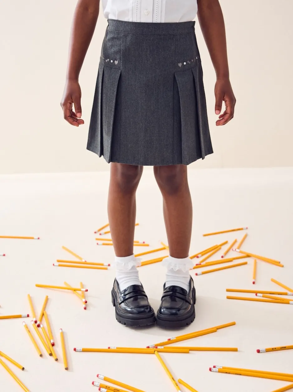 Next Gris – Jupes d’école en plissé brodé (3-16yrs) Clearance