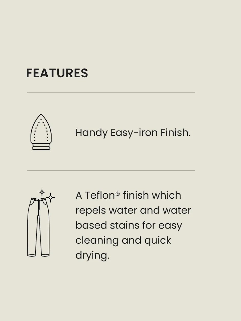 Lavable en machine. 65% Polyester recyclé, 35% Viscose.