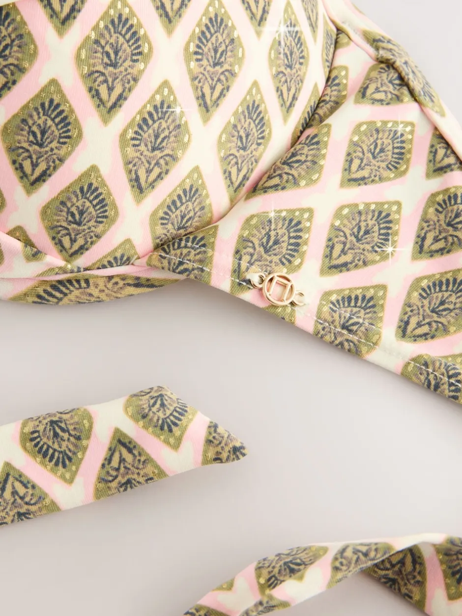 Next – Haut de bikini rembourré plongeant avec armatures rembourré Vert kaki/Cream Woodblock à la feuille d’aluminium Discount