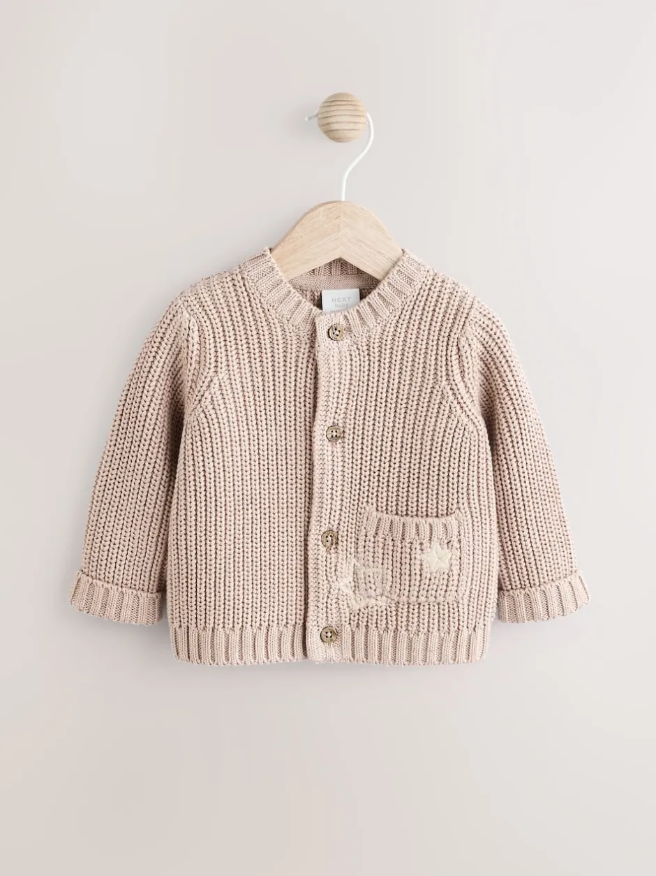 Next Hello World Neutre – Cardigan épais brodé en maille pour bébé New