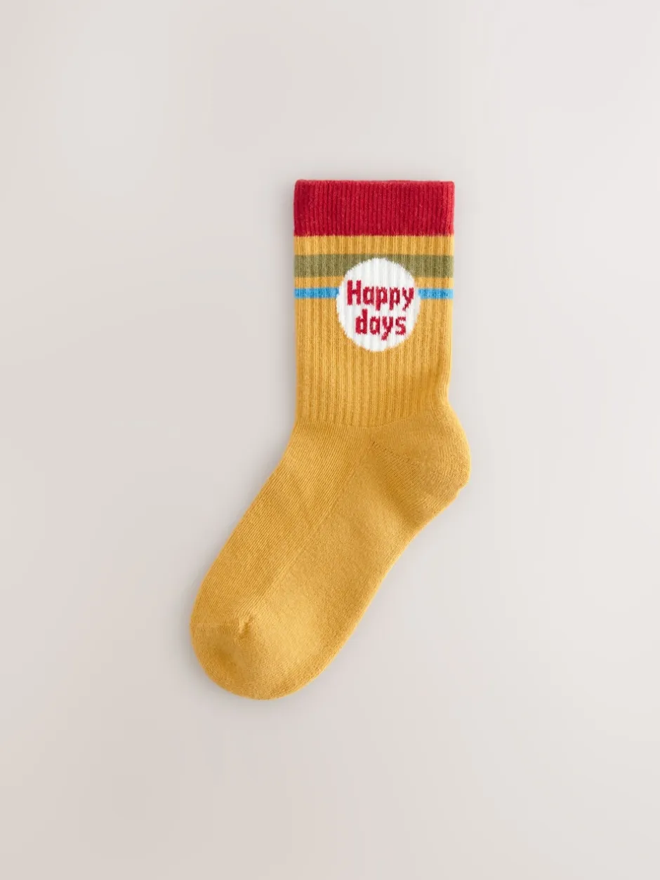 Next – Lot 5 paires de chaussettes Character riches en coton Écru/Moutarde/Rouge Slogan rétro