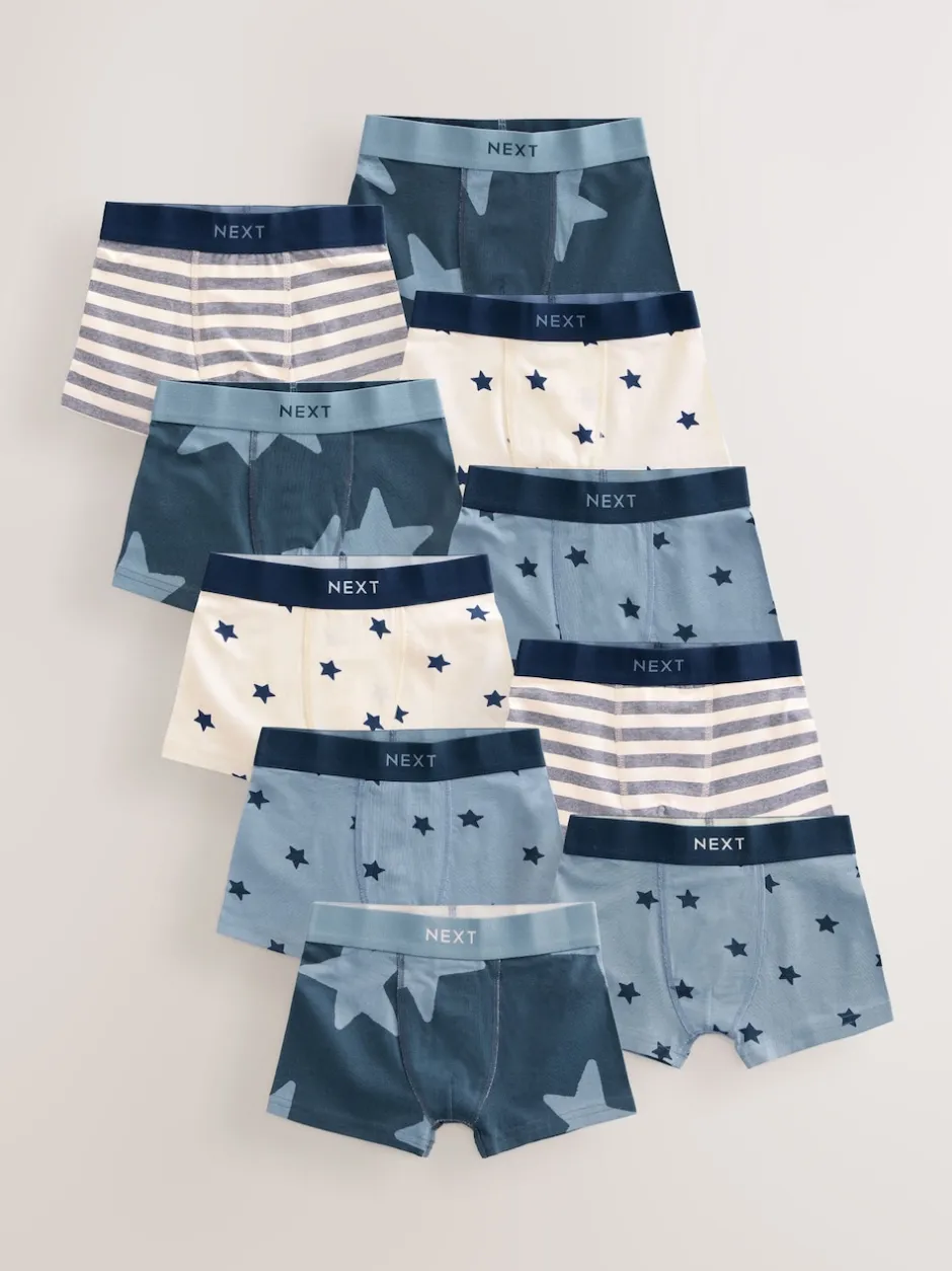 Next – Lot de 10 boxers (1.5-16ans) Étoiles et rayures bleues New