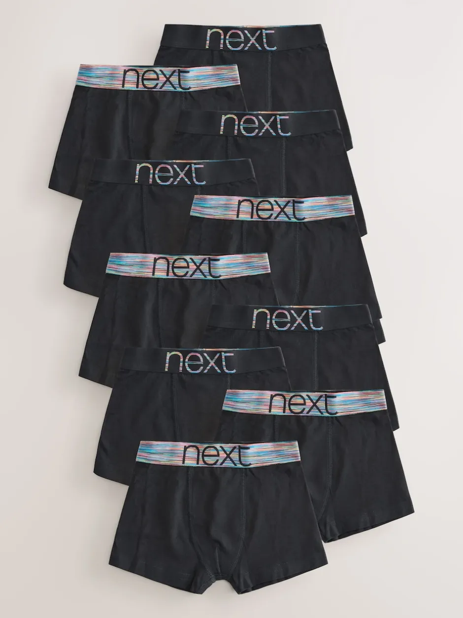 Next – Lot de 10 boxers (1.5-16ans) Noir avec taille brillante