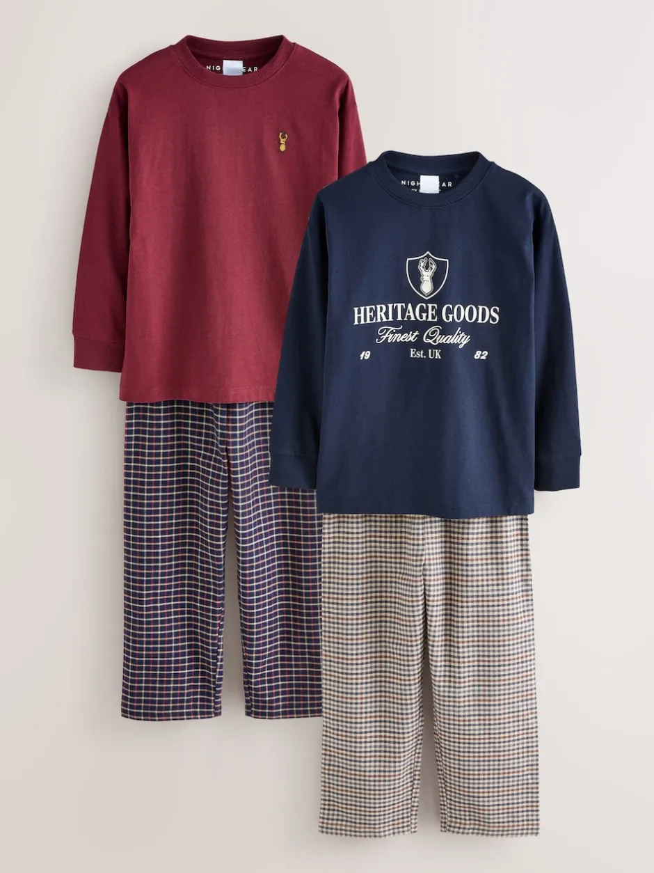 Next – Lot de 2 pyjamas en tissu à carreaux à manches longues (3-16ans) Marine/Bourgogne Outlet