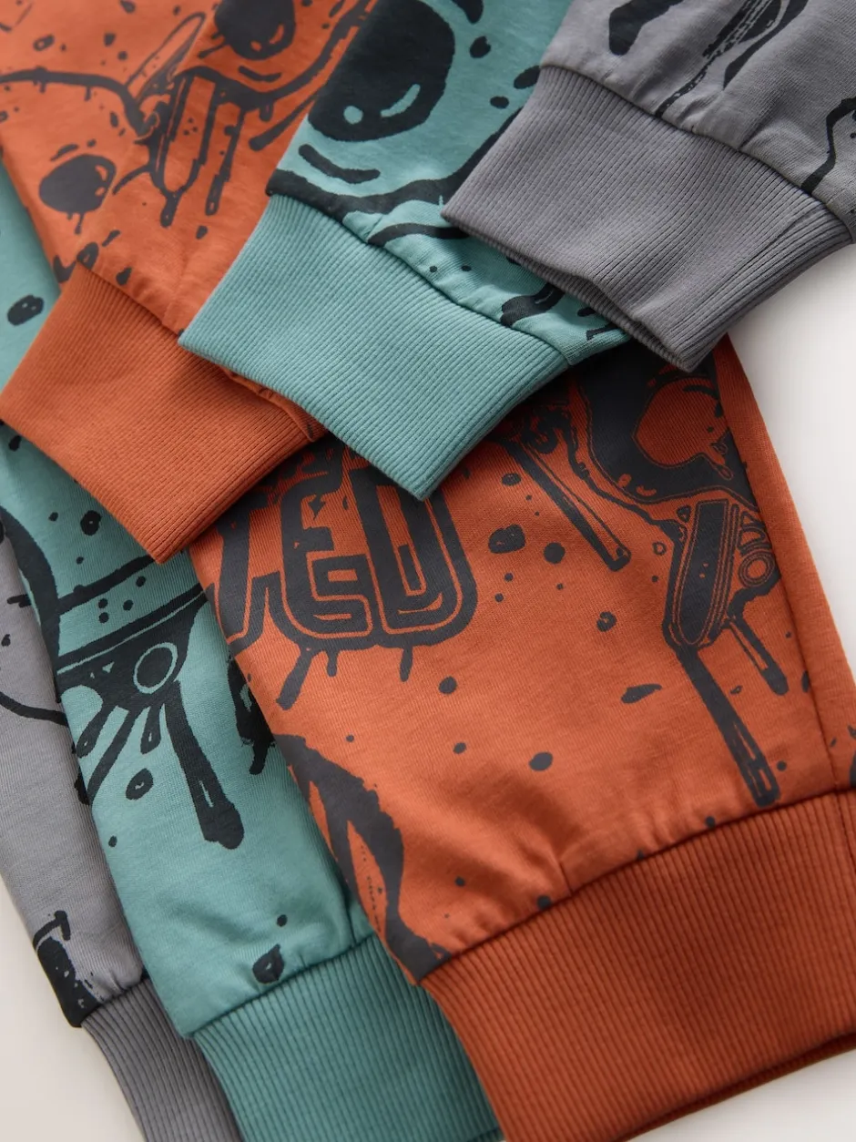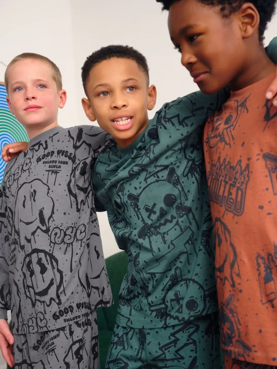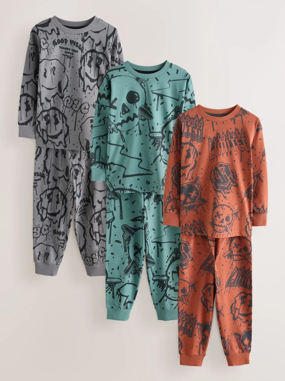 Next – Lot de 3 pyjamas à manches longues (3-16ans) Crâne graffiti vert/orange Online