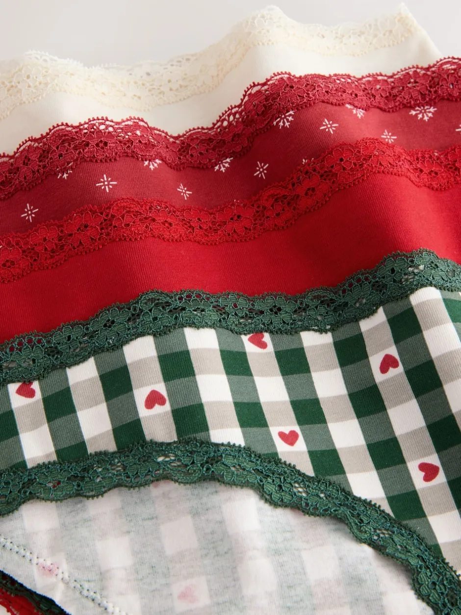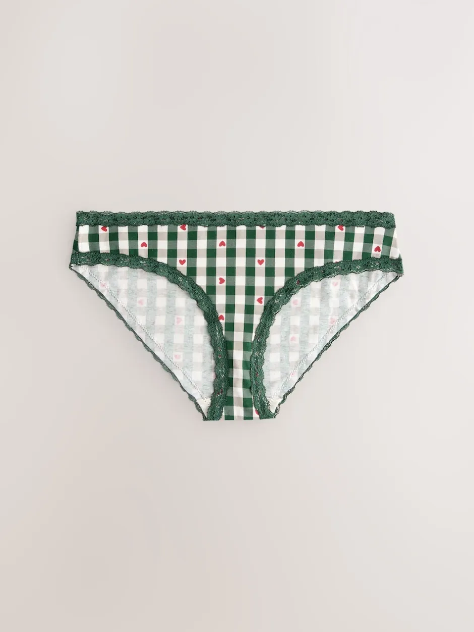 Next – Lot de 4 culottes en coton et dentelle Cœur rouge/vert à carreaux Hot