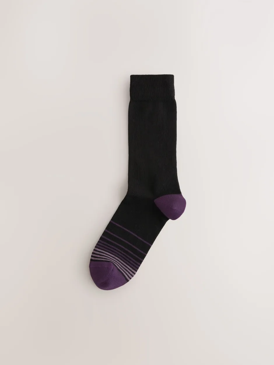 Next – Lot de 7 – Chaussettes riches en coton pour homme Noir Couleur Ombre Hot