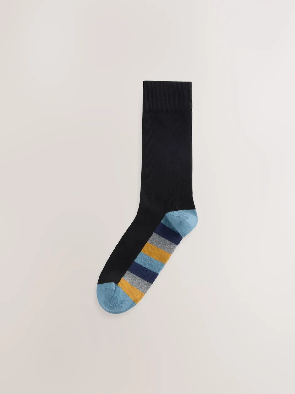Next – Lot de 7 – Chaussettes riches en coton pour homme Rayures rugby noires Sale