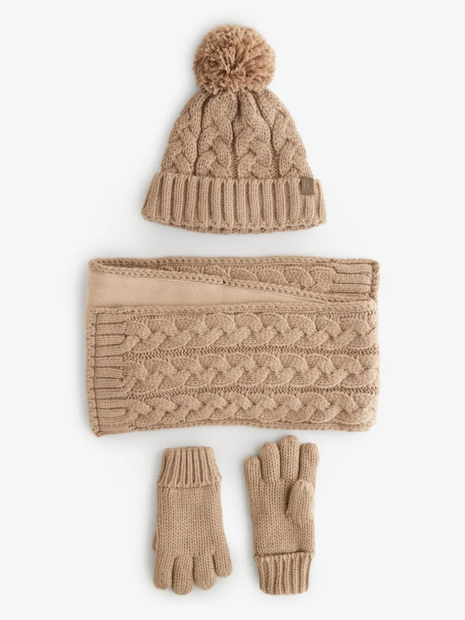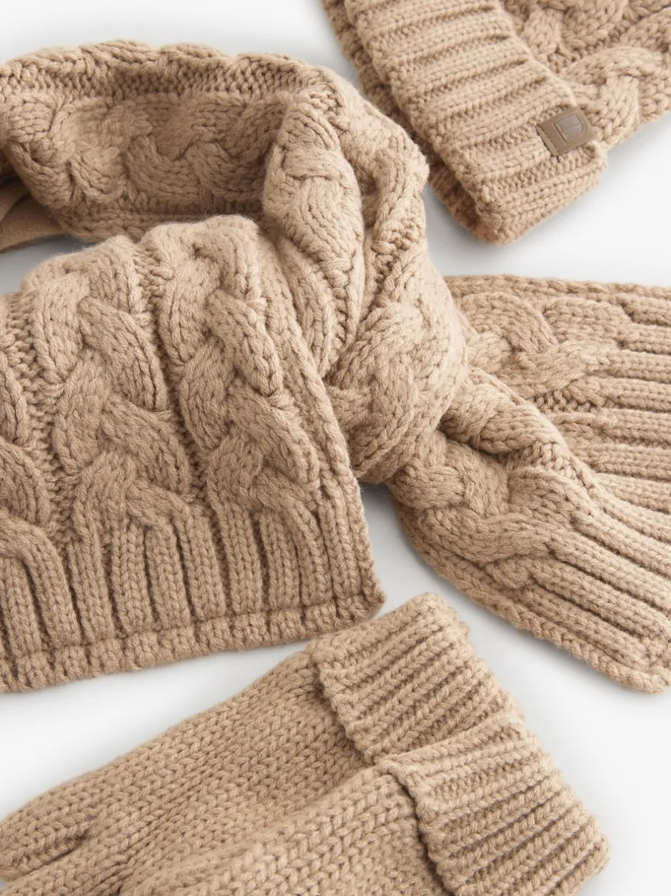Next Maille torsadée neutre – Ensemble 3 pièces chapeau, gants et écharpe (3-16ans) Outlet