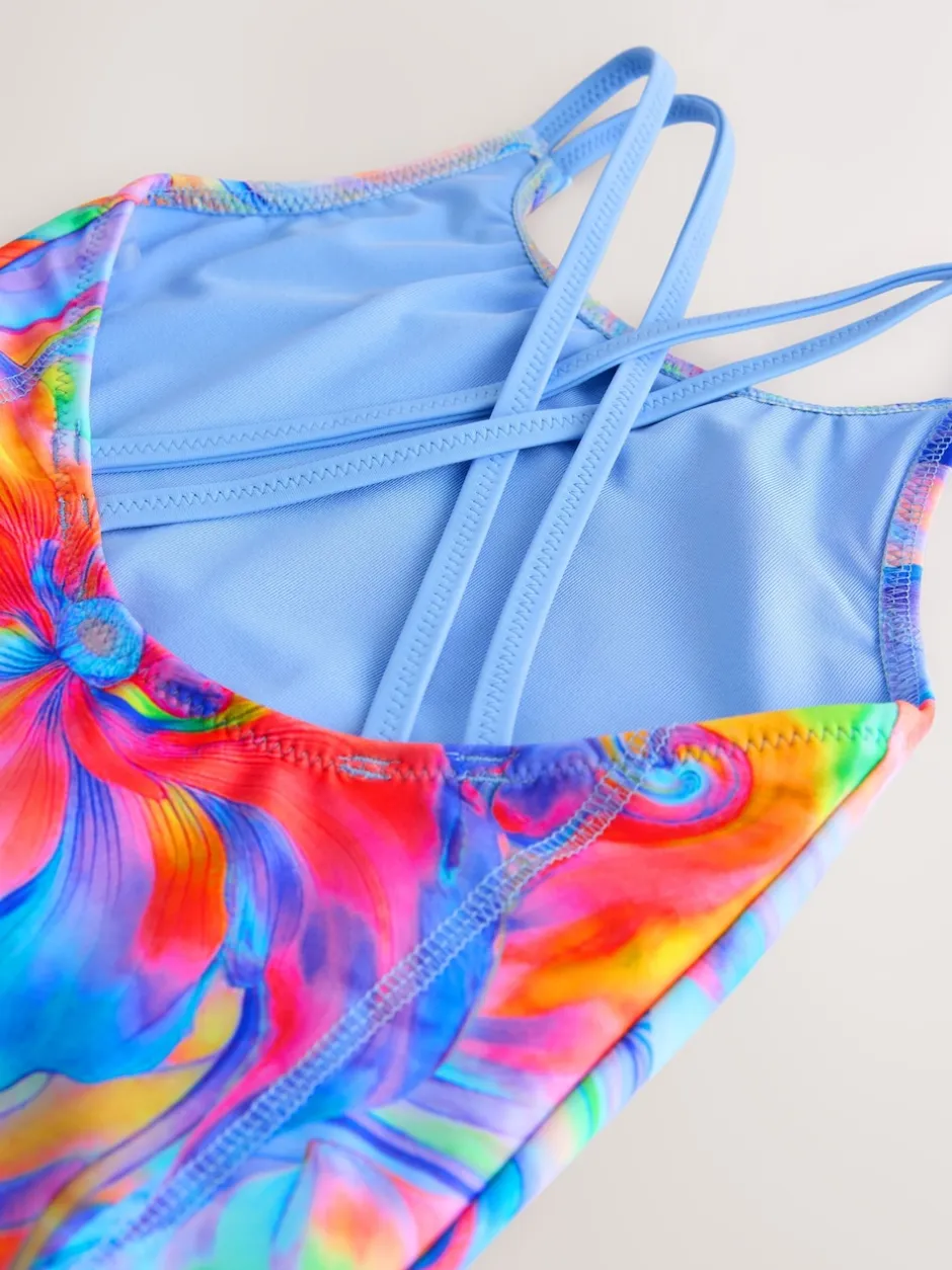 Next – Maillot de bain à double bretelle (3-16yrs) Bleu effet tourbillon Discount