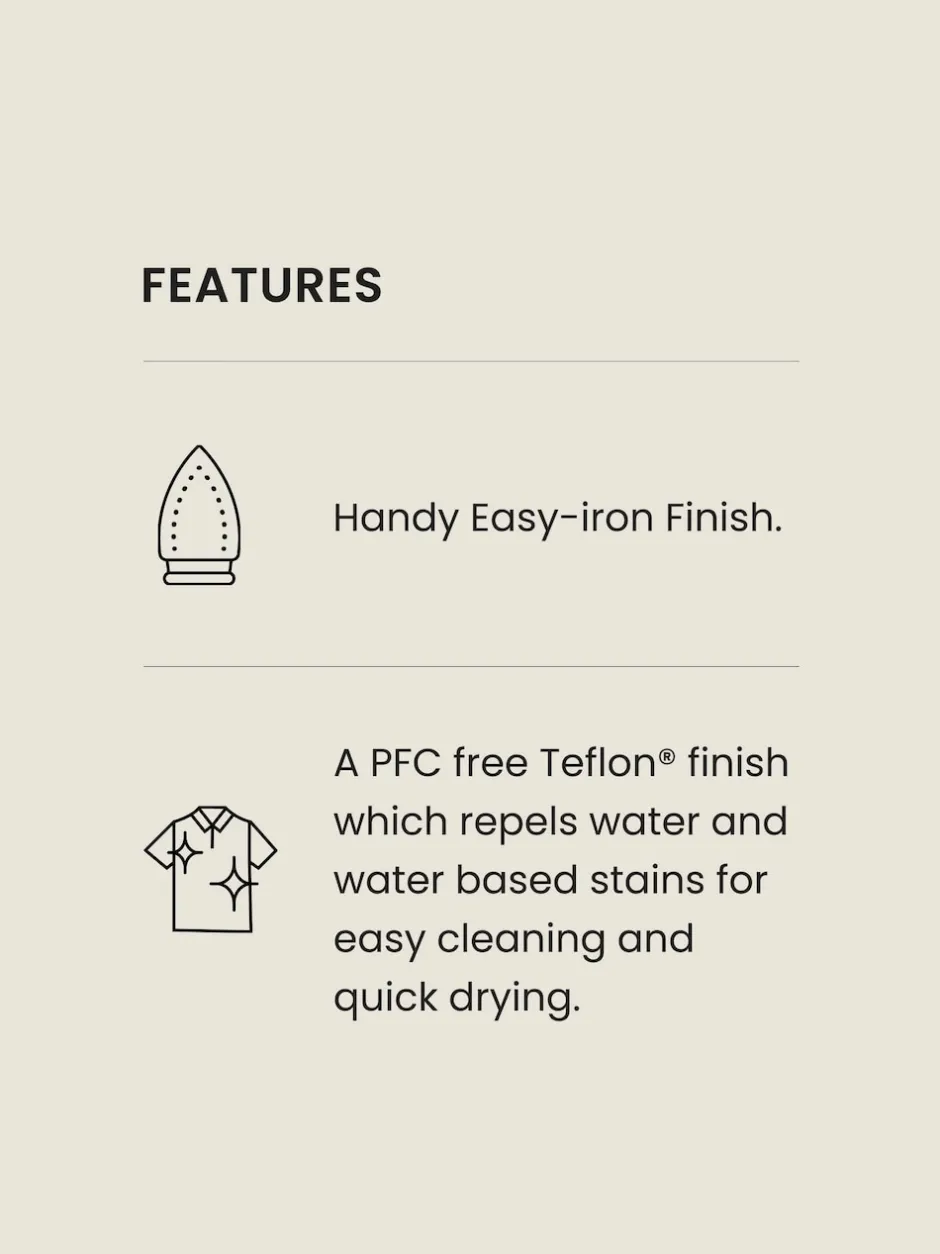 Lavable en machine. 65% Polyester recyclé, 35% LENZING™ ECOVERO™ Viscose.