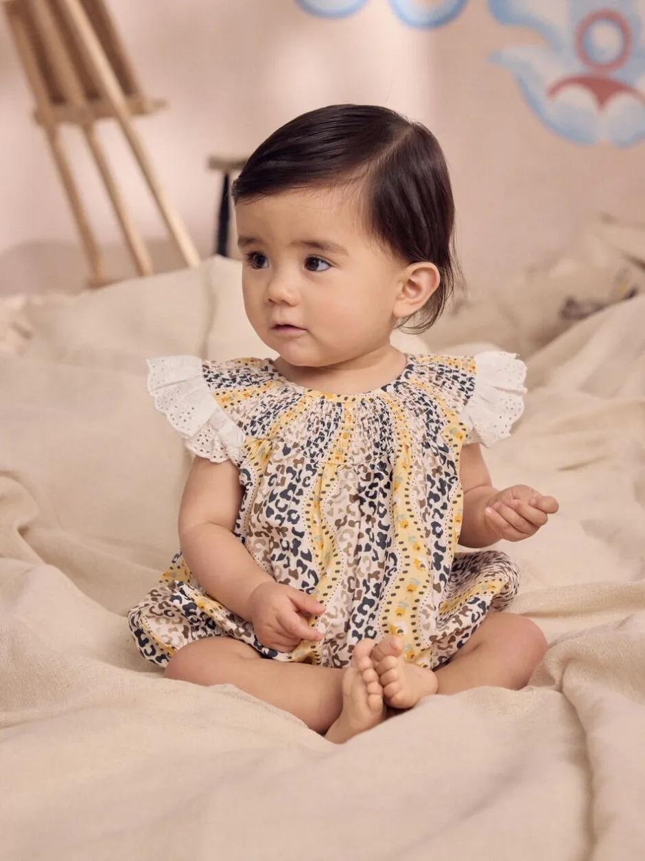 Next Marron À motifs – Barboteuse brodée Cath Kidston 100% coton imprimée Clearance