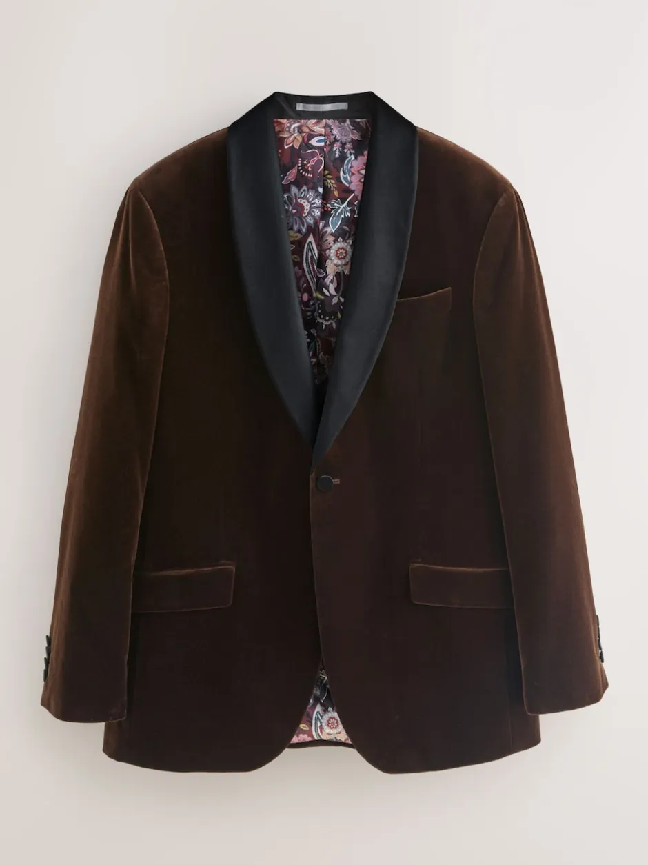 Next Marron – Ajustement régulier – Blazer Signature Pontoglio en velours italien avec revers châle Best