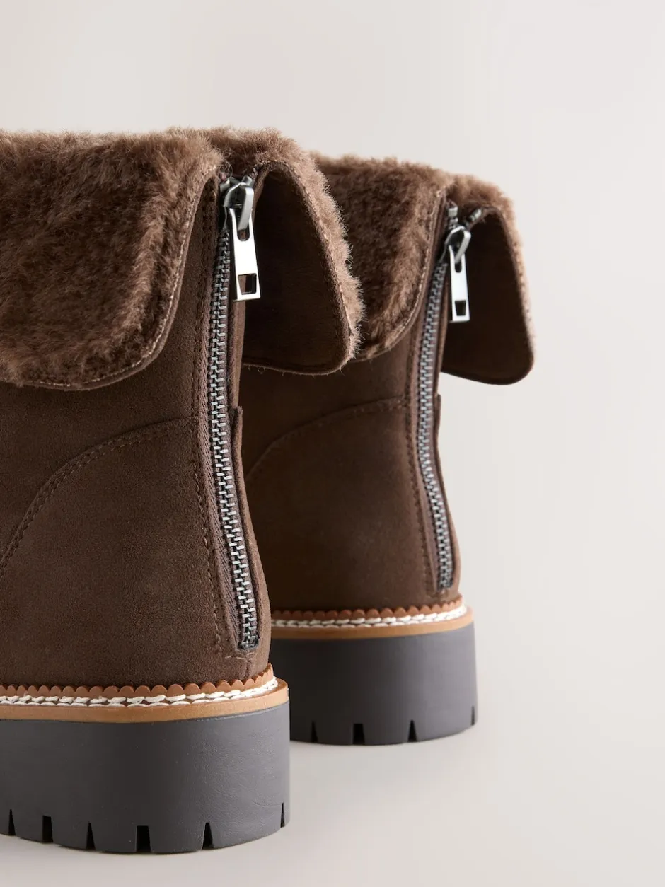 Next Marron chocolat – Bottines Forever Comfort® à poignets en fausse fourrure Clearance