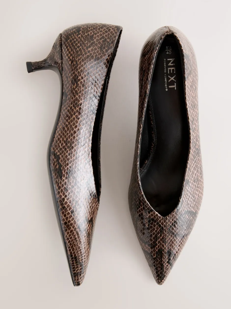 Next Marron chocolat – Chaussures à talons Kitten heel à bout pointu Clearance