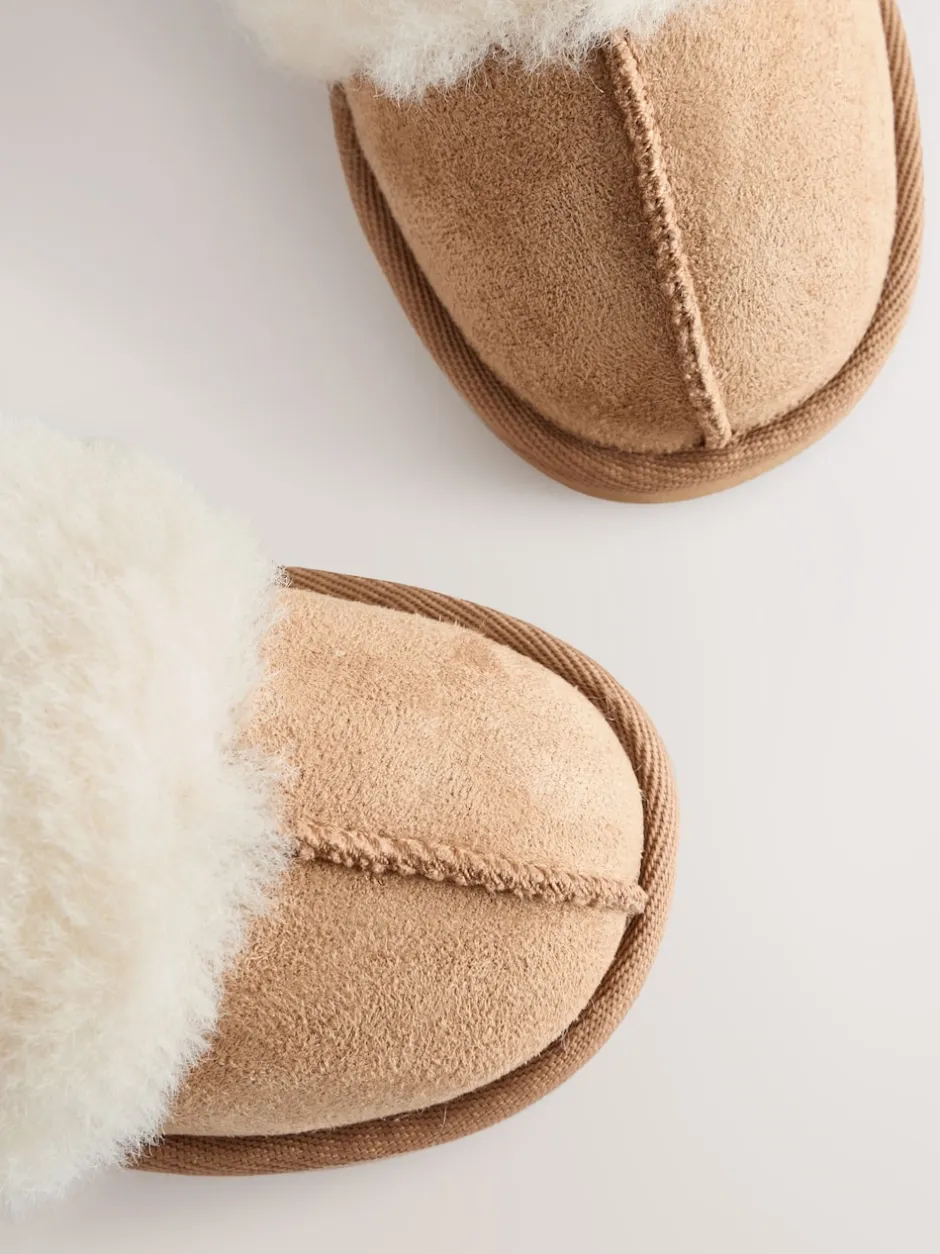 Next Marron fauve – Chaussons en fausse fourrure Sale