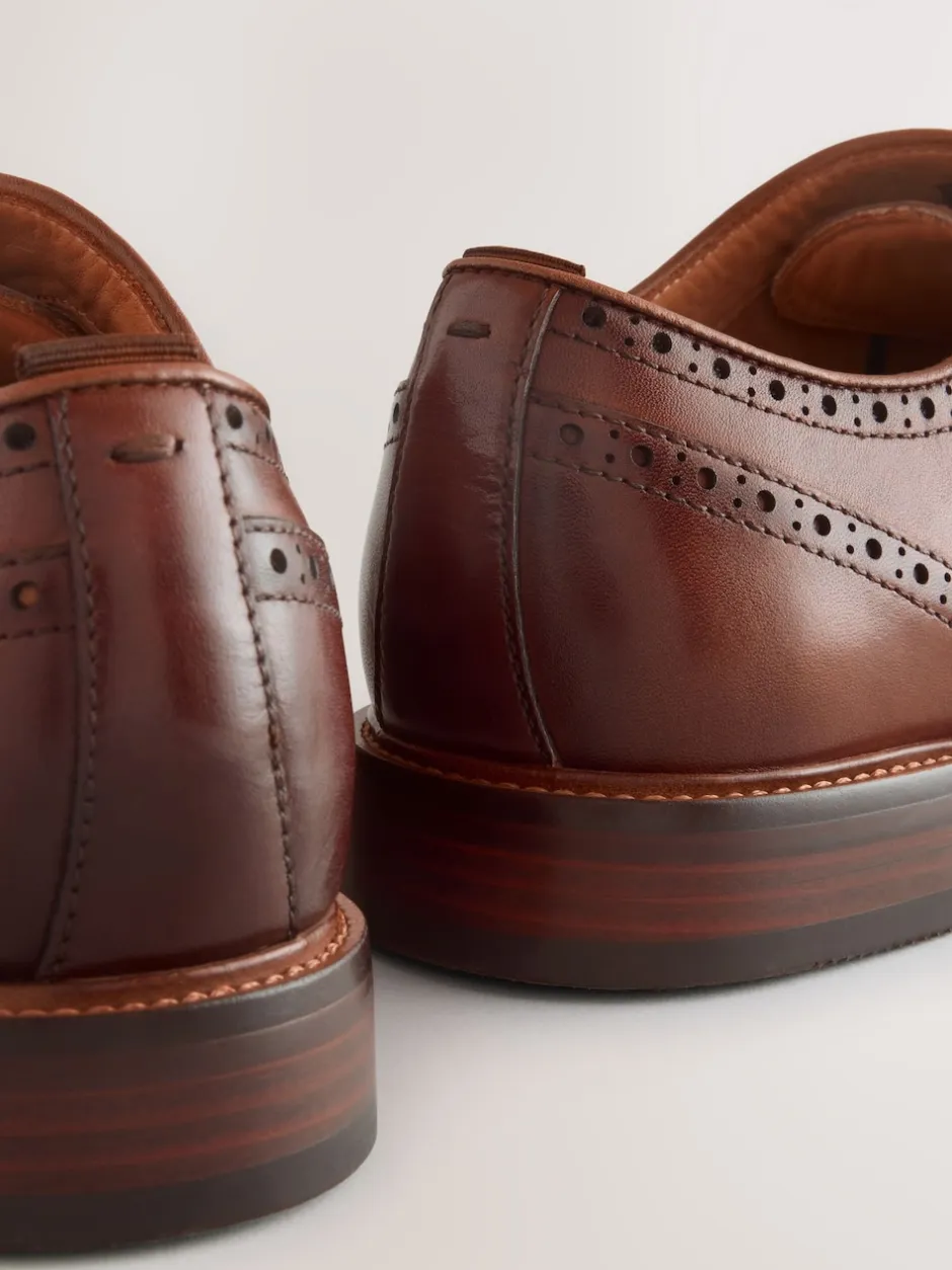 Next Marron fauve – Chaussures Oxford Wingcap en cuir Sale
