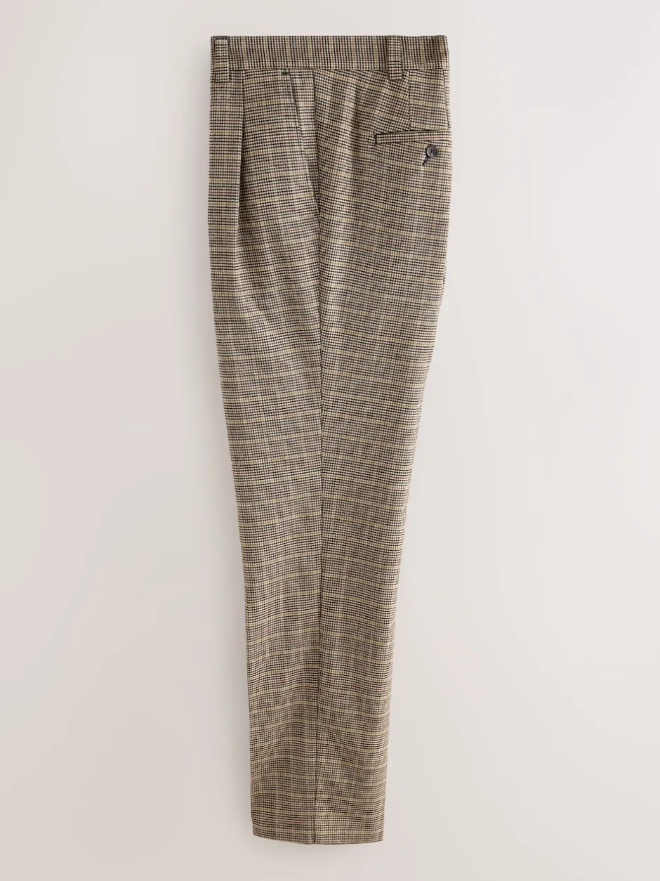 Next Marron/jaune – Pantalon élégant à carreaux à double plis coupe droite Online