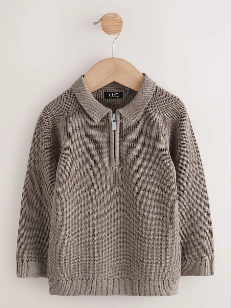 Next Marron mink – Manches longues Quarter Zip Knitted Polos (3mths-7yrs) Best