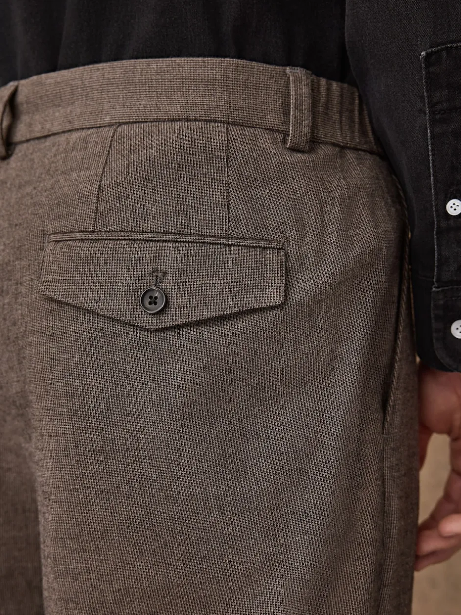 Next Marron – Pantalon élégant en coton brossé texturé coupe classique Clearance