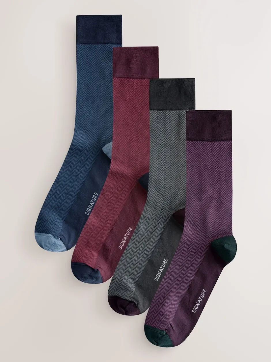 Next – Modal Signature Chaussettes 4 Lot Rouge/vert/bleu à chevrons Hot