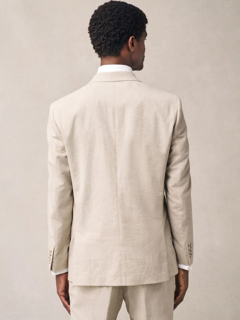 Next neutre – Veste de costume à carreaux en lin Blend coupe régulière