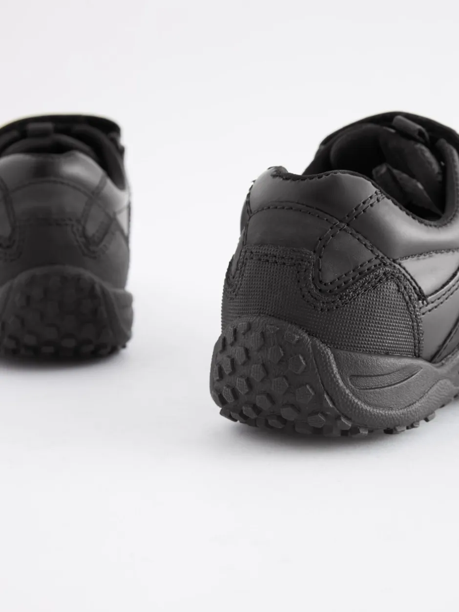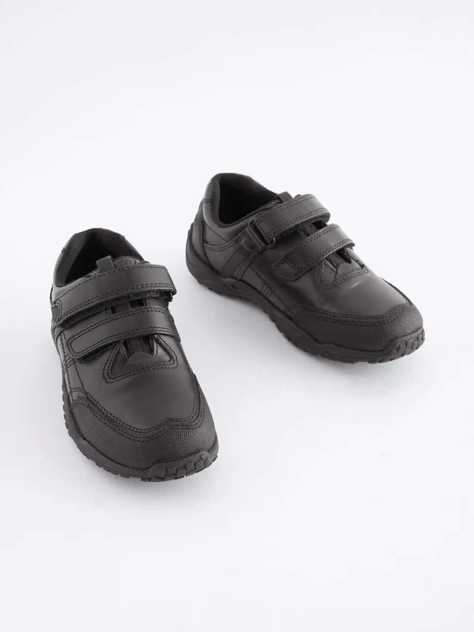 Next Noir – Chaussures d’école en cuir à fermeture scratch Coupe large (G) New