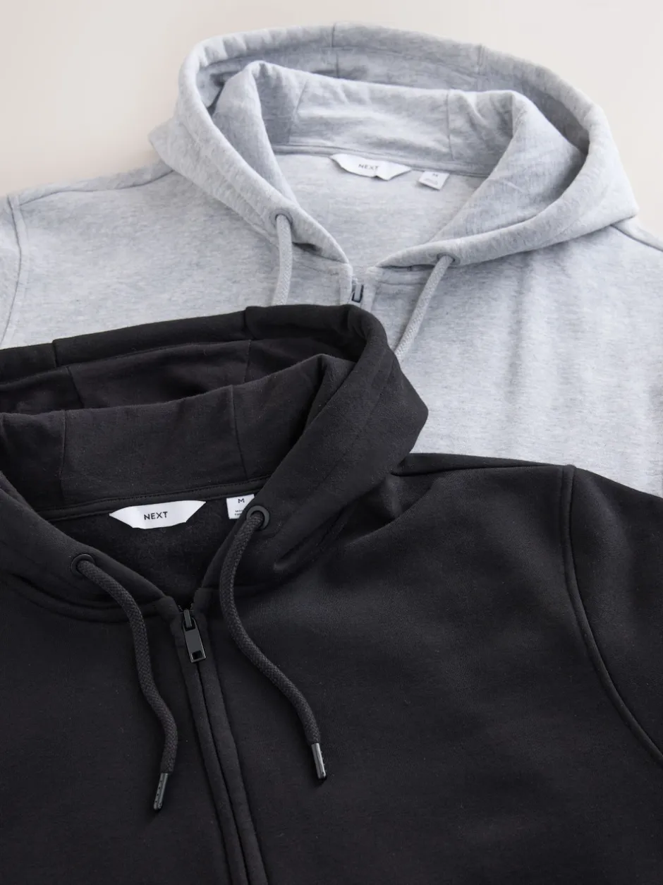 Next Noir/gris chiné – Lot de 2 sweats à capuche zippés en jersey épais coton riche