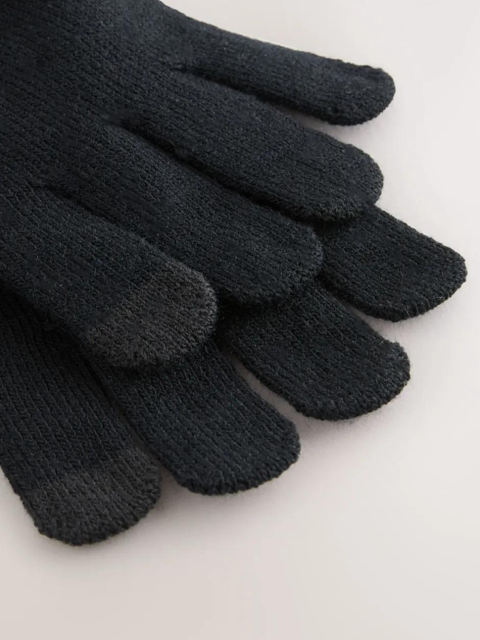 Lavable en machine. 3 x Gants 53% Polyester recyclé, 44% Acrylique, 3% Elasthanne.