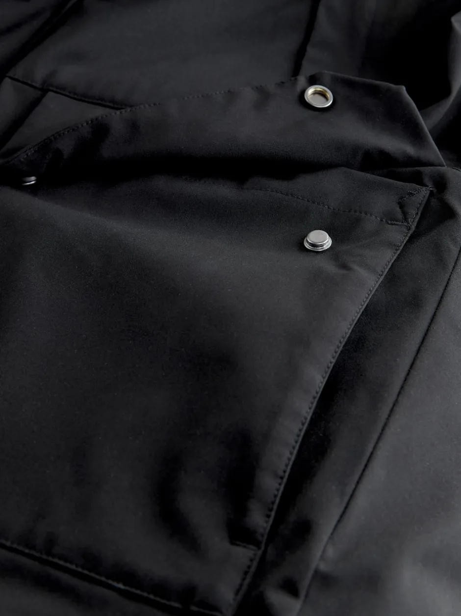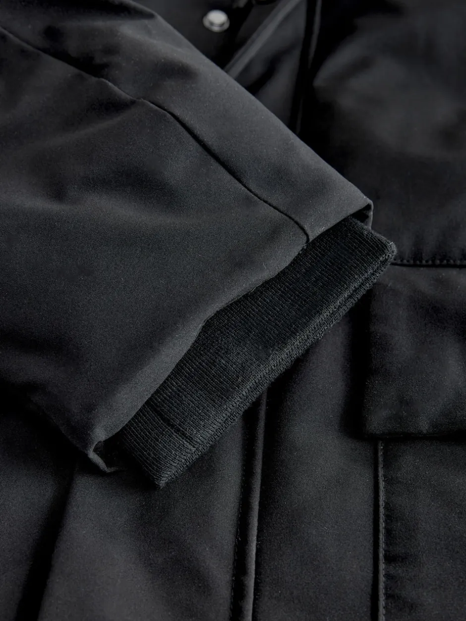 Coquille 100% de polyester recyclé. Doublure 100% de polyester recyclé. Ouate 100% de polyester recyclé.