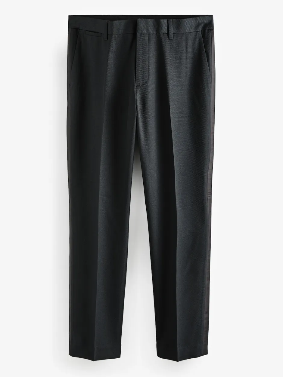 Next Noir – Slim Fit (Slim Fit) – Pantalon de smoking texturé avec détail de ruban adhésif Online