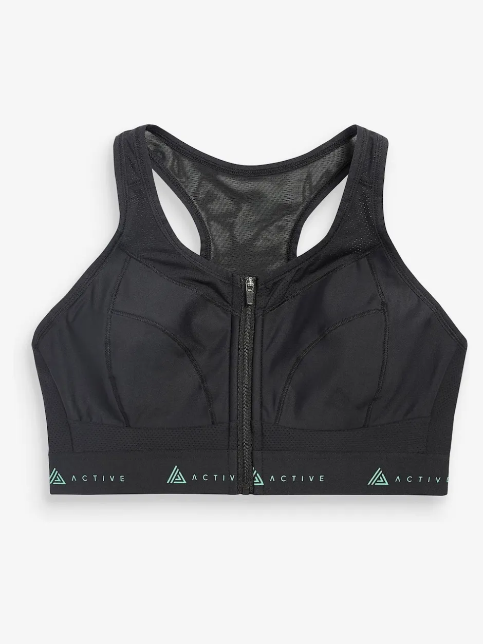 Next Noir – Soutien-gorge DD+ Active Sports zippé sur le devant Dry Tech à impact élevé Discount