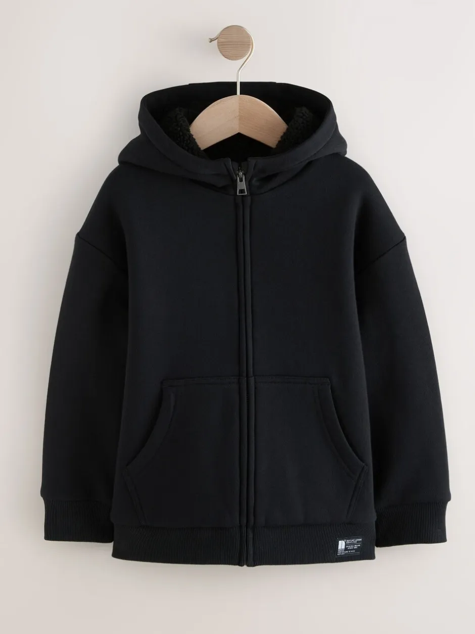 Next Noir – Sweat à capuche zippé en polaire Borg (3-16ans) Outlet