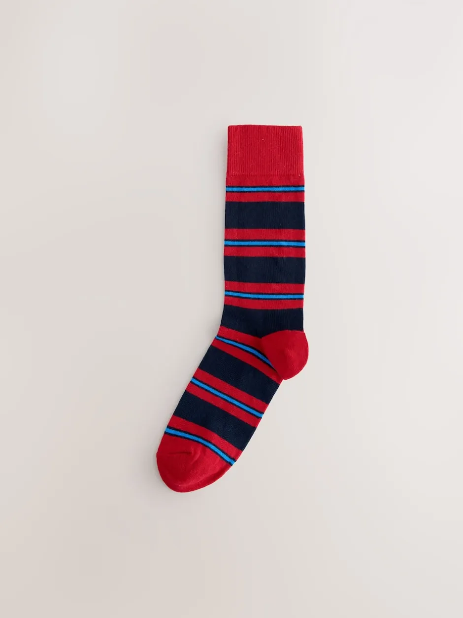 Next – Paquet de chaussettes à motifs 8 Rayé bleu/rouge/marron Best