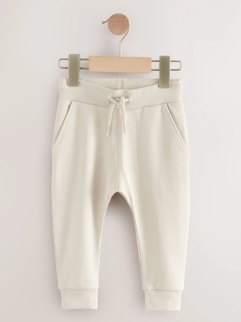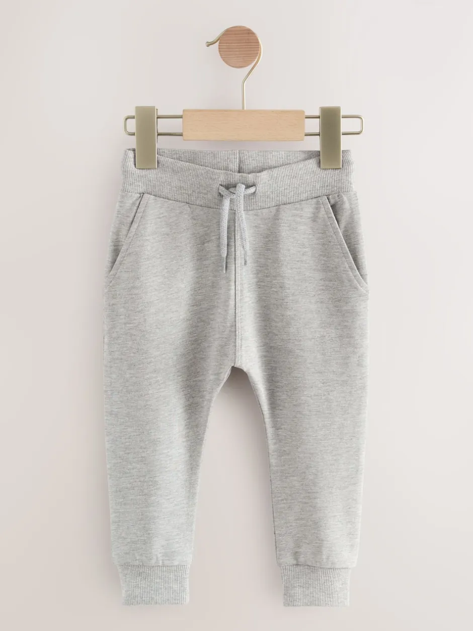 Lavable en machine. 4 x Survêtement couleurs unies 95% coton, 5% élasthanne. Survêtement gris chiné 85% coton, 10% viscose, 5% élasthanne.